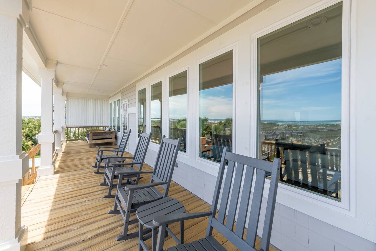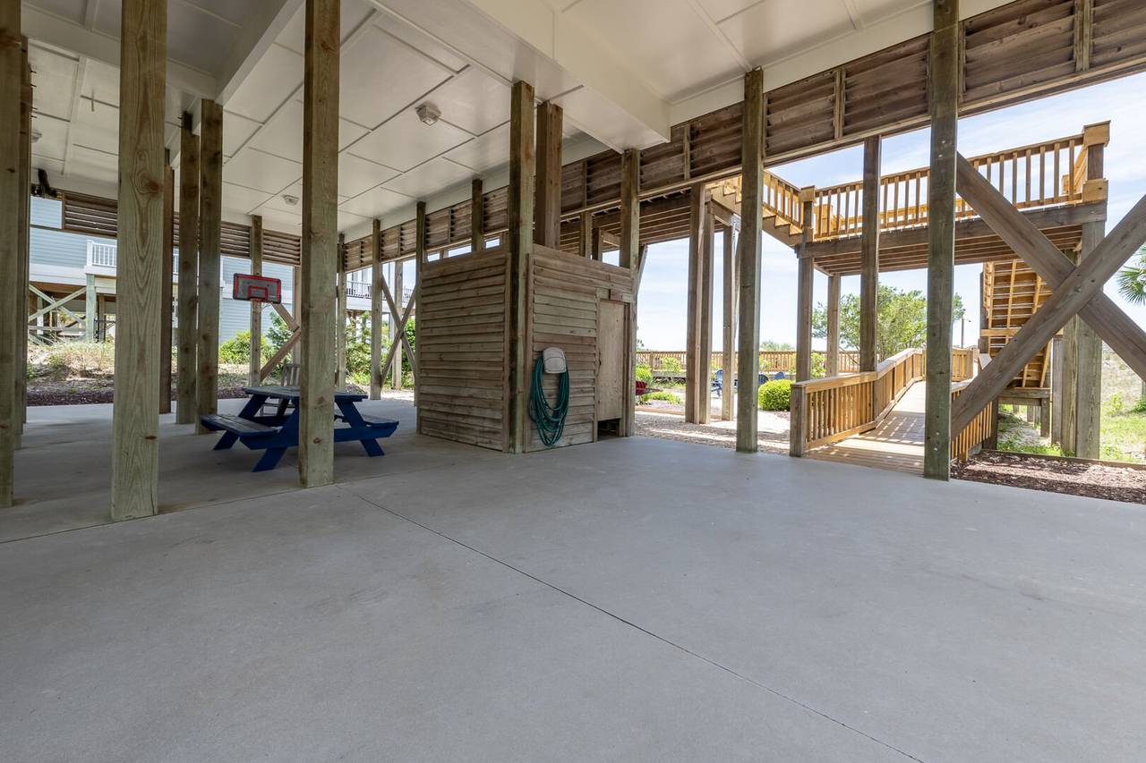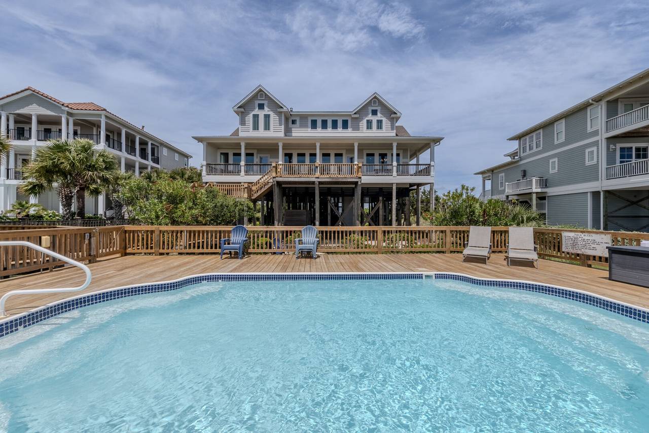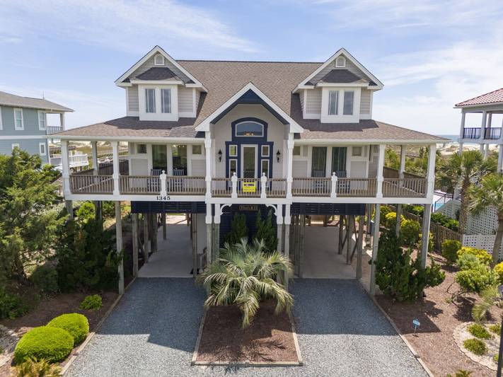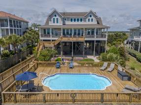 This gorgeous 6 bedroom, 5.5 bath home (2K, 3Q, 2T) is located inside the gated west end of the island where you can explore the beach, Shallotte inlet, and 22-acre nature reserve. See the sunrise and the sunset from the covered wraparound porch.