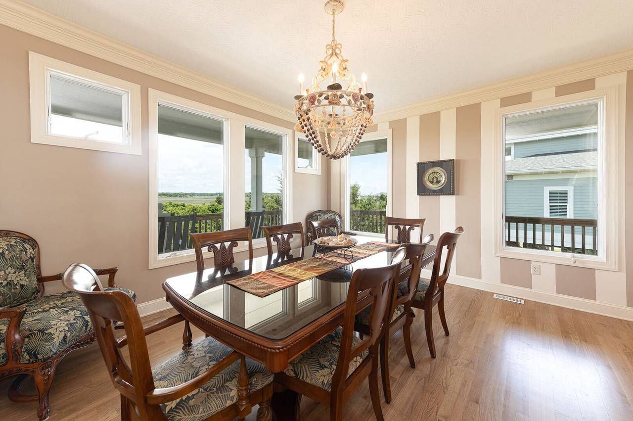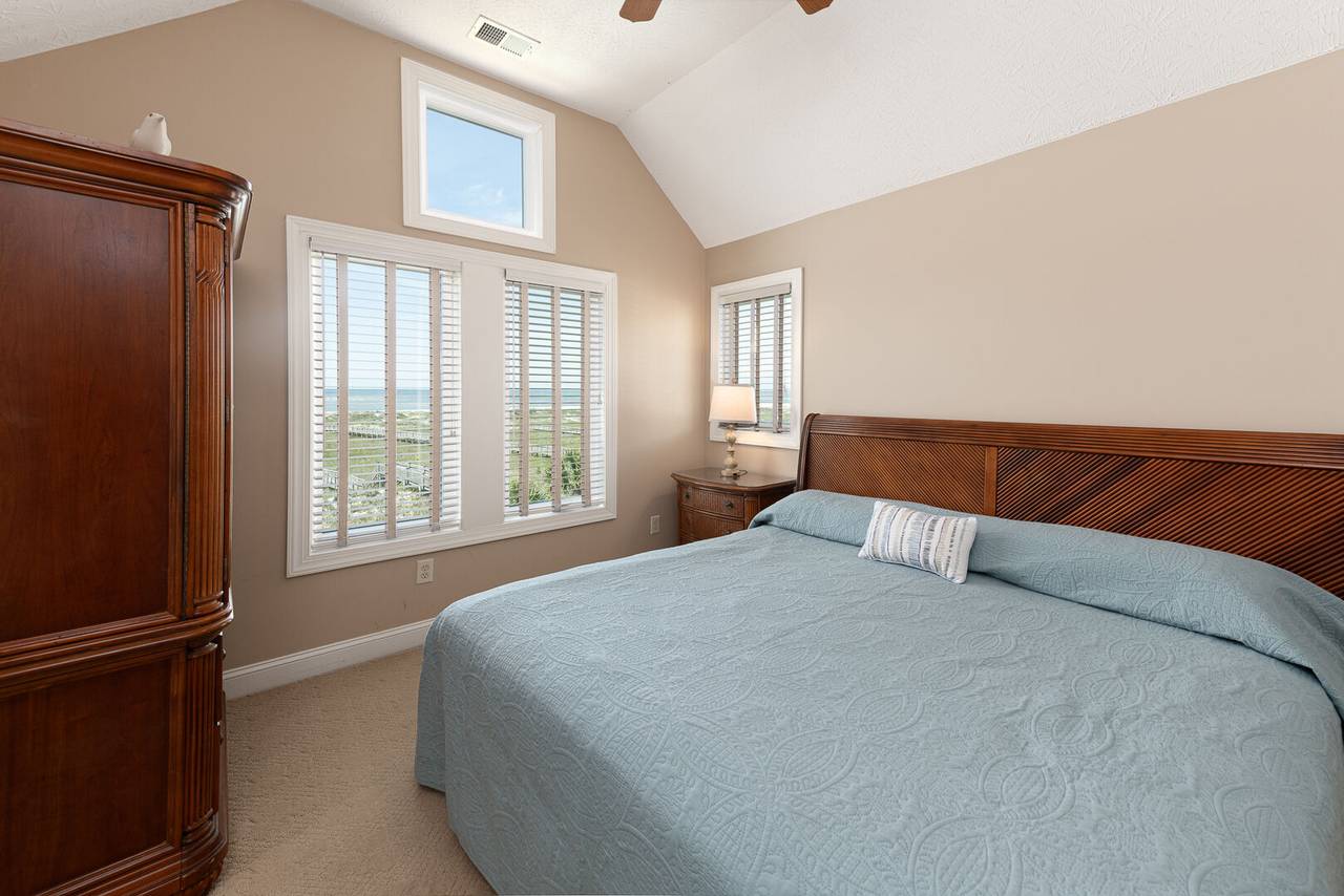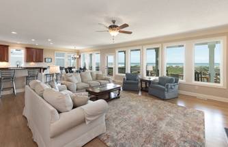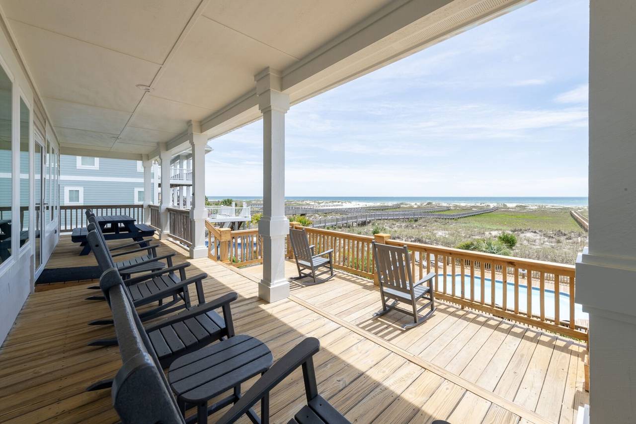 This gorgeous 6 bedroom, 5.5 bath home (2K, 3Q, 2T) is located inside the gated west end of the island where you can explore the beach, Shallotte inlet, and 22-acre nature reserve. See the sunrise and the sunset from the covered wraparound porch.