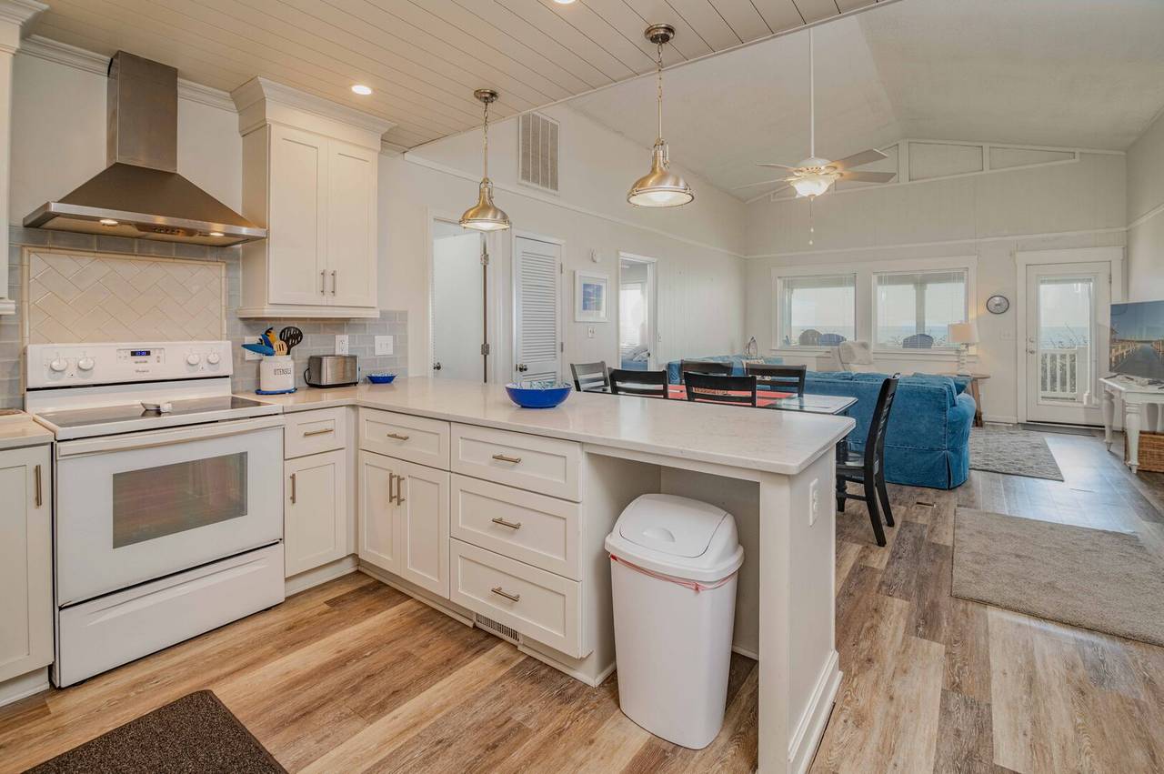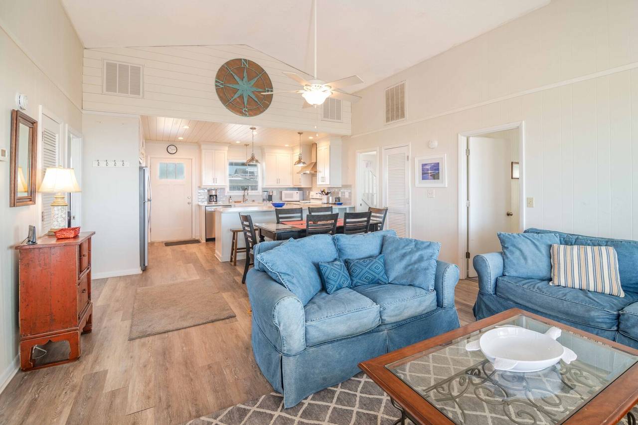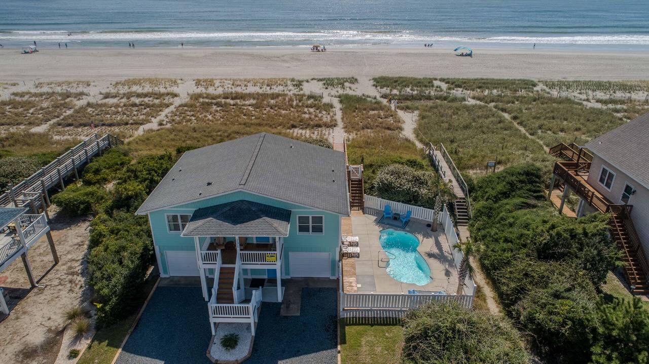 This charming oceanfront cottage is the perfect retreat for your next island vacation. This one-level classic beach cottage has been updated and boasts all the comforts of home but only steps away from the beach strand. Situated on a large oceanfront lot, there is plenty of room for grilling and yard games plus a private swimming pool with lots of room to lounge and sunbathe. The street side and oceanfront decks are partially covered and perfect for taking in the sunsets and ocean breezes. Inside you will find 4 bedrooms, 2 bathrooms, and an open floor plan with lots of natural light. There is also a full-size washer and dryer in the garage. Occupancy is limited to 9 guests.