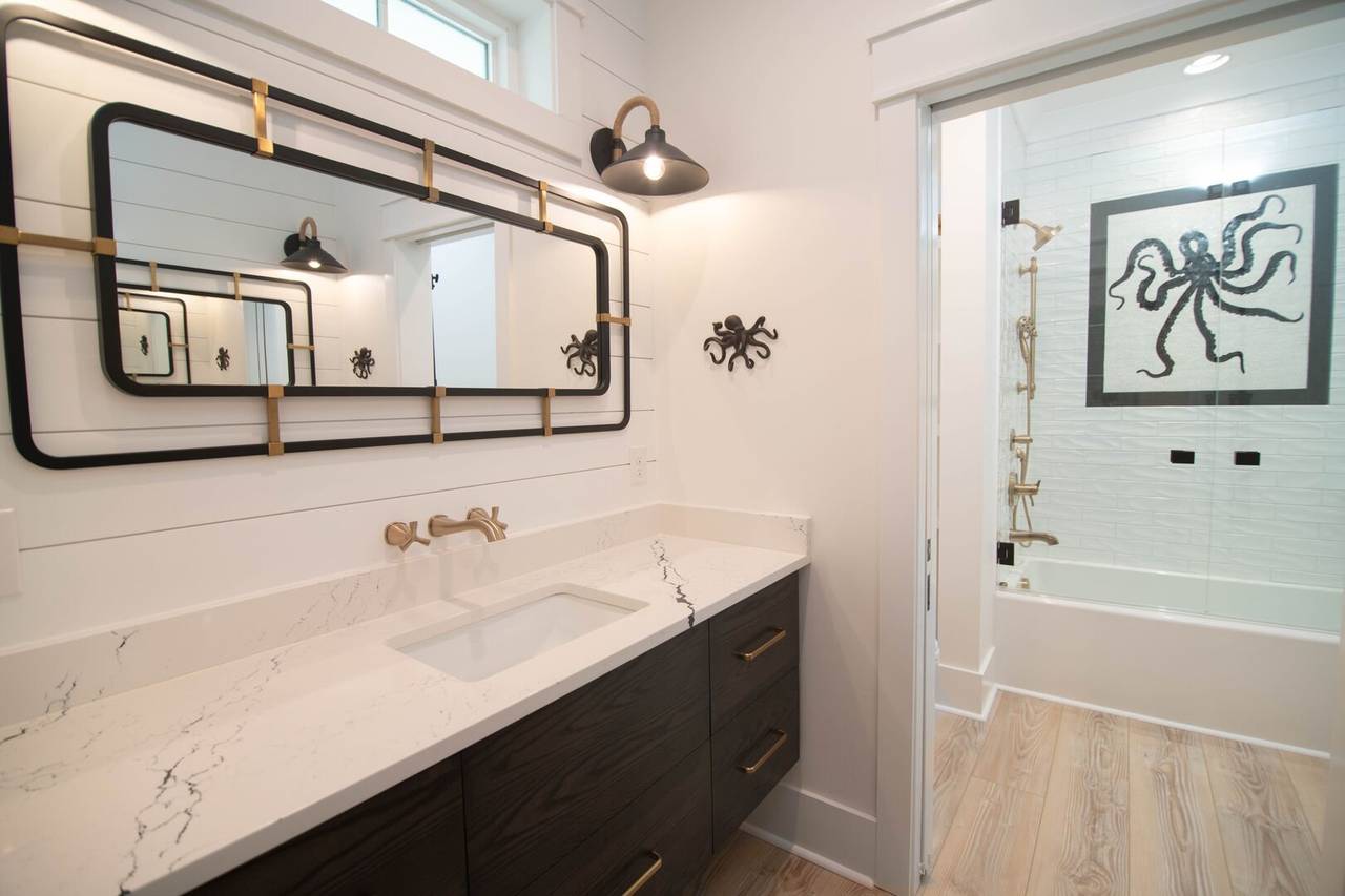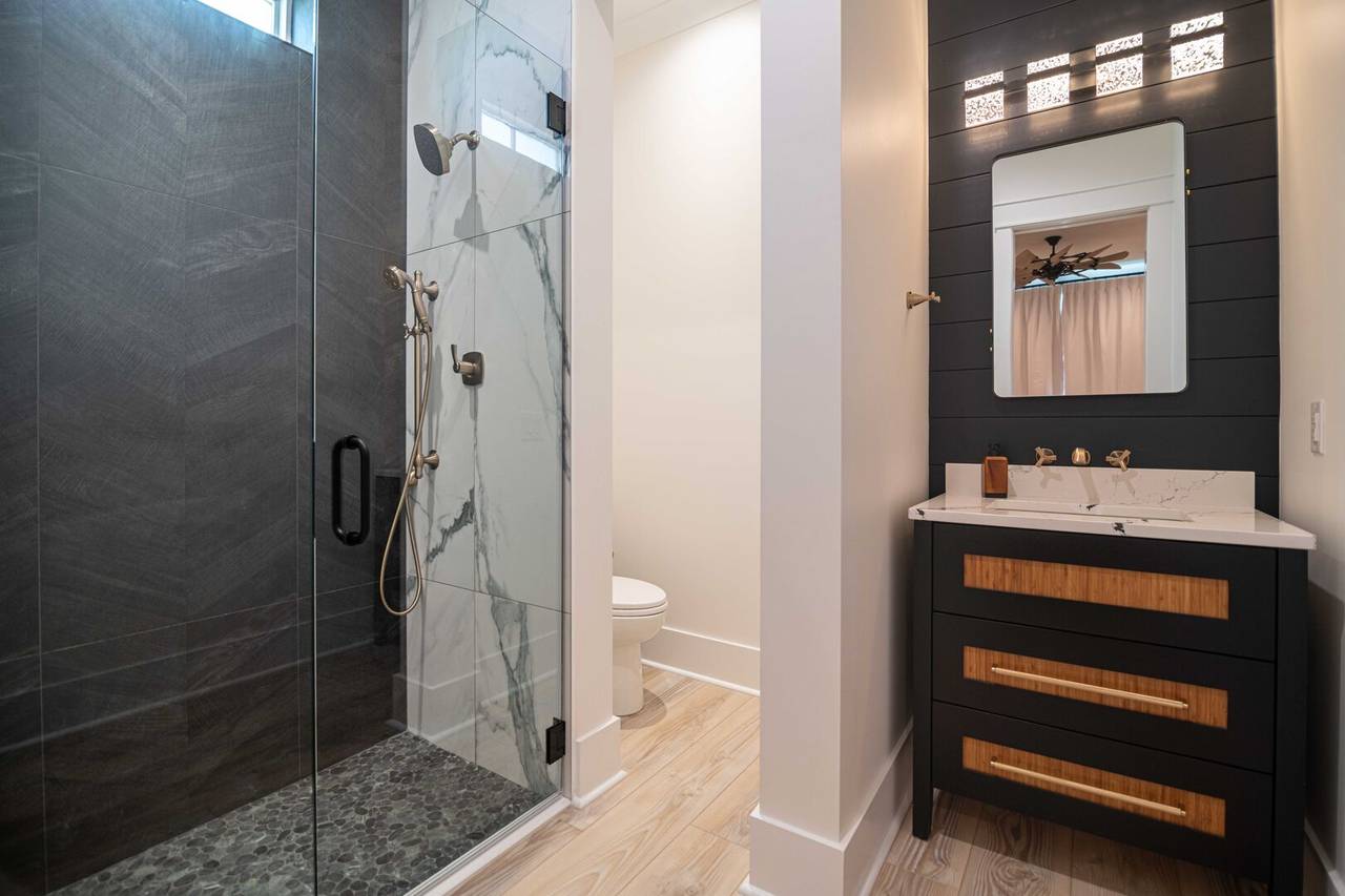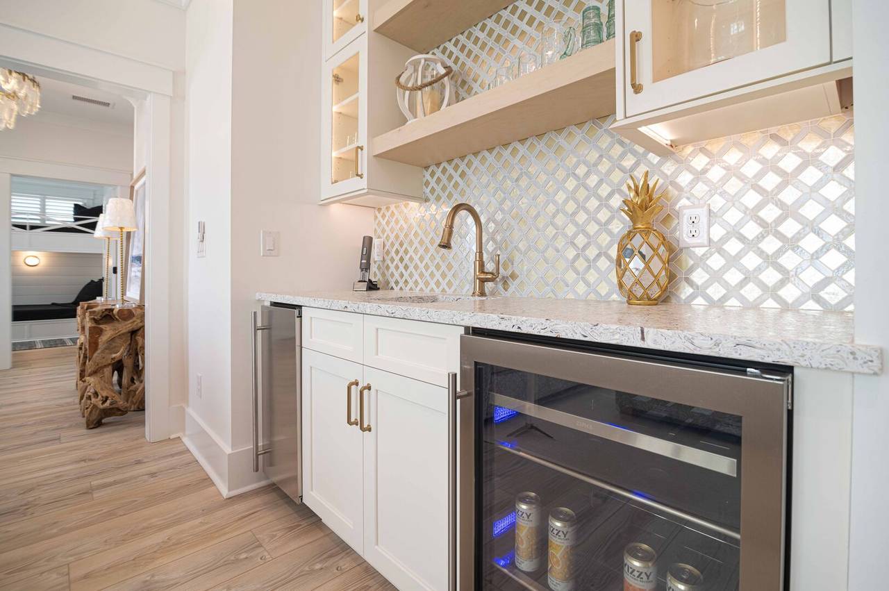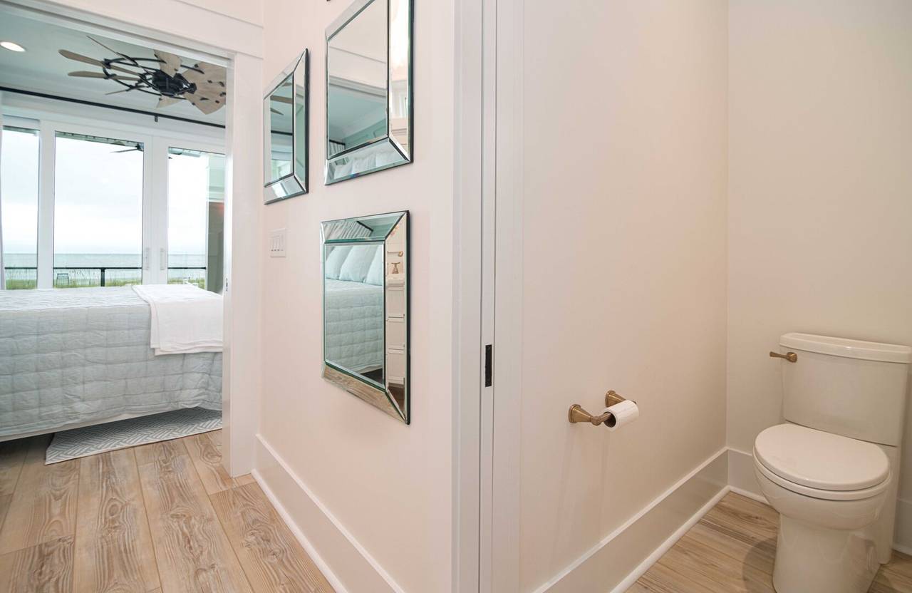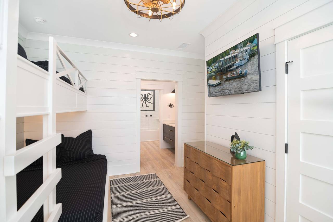 There is also a wet bar, built-in nugget ice maker, and beverage fridge for convenience. The views from the upstairs common area are phenomenal and flooded with natural light. The gourmet kitchen has everything you need to prepare delicious seafood dinners! From the large Thermador gas range (6 burners) to the elevated finishes and other high-end appliances, you will not be disappointed with the details! There is even another built-in nugget ice maker in the kitchen. Don’t miss the vaulted ceiling in the living room and the lit ceilings for ambiance, the cozy gas logs for chillier temps, and the half bathroom just off the open common area. Occupancy is limited to 14.