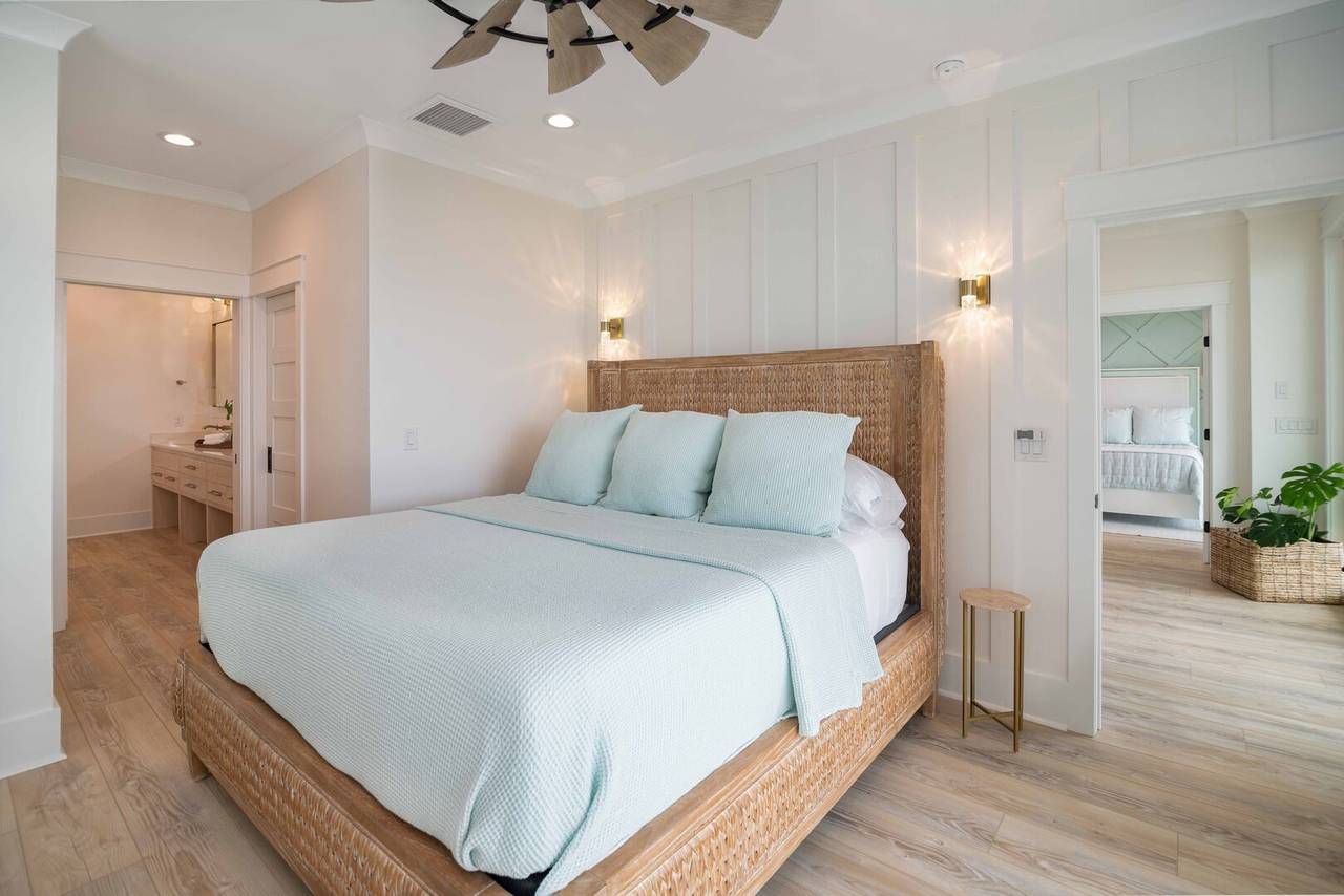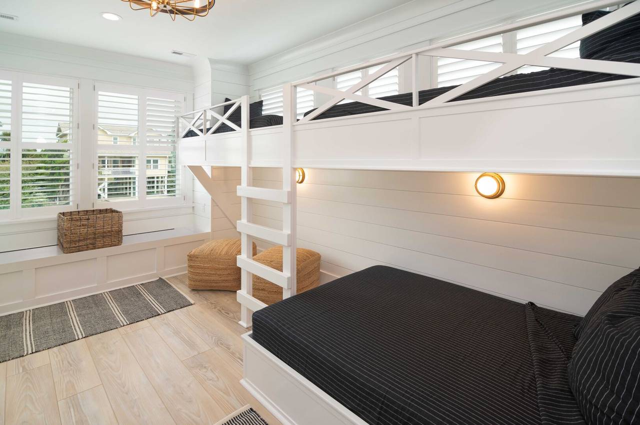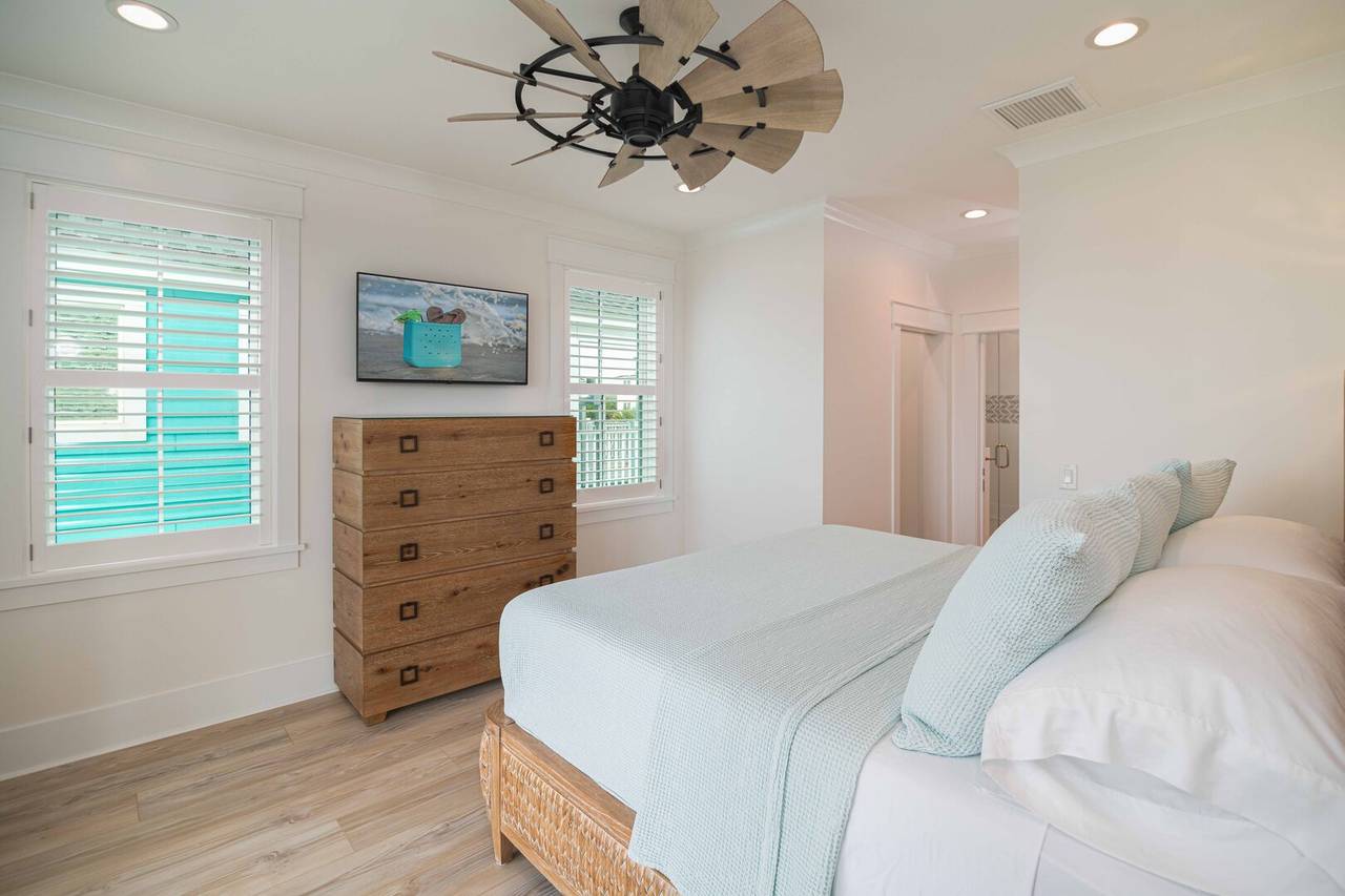 Villa Blanca is a luxurious oceanfront vacation home! Each room in this beautiful island home is a new experience! An inverted floor plan maximizes views, and there are five spacious bedrooms - each with a private bathroom and flatscreen TV. Four bedrooms have king beds, private bathrooms, curbless showers, and rainfall showerheads. The fifth bedroom is perfect for the kids, with one set of built-in bunks (twin and double), a built-in top twin bed, and a private bathroom with three sinks and a bathtub. A media room offers the perfect retreat to play games, relax, or enjoy a movie night!