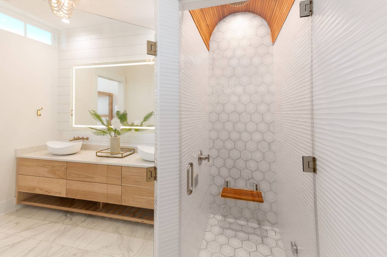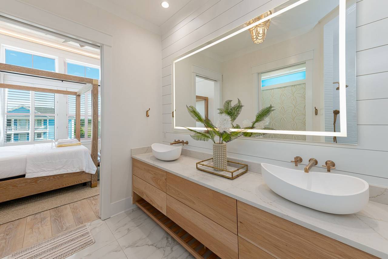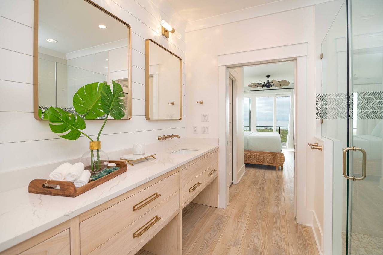 Villa Blanca is a luxurious oceanfront vacation home! Each room in this beautiful island home is a new experience! An inverted floor plan maximizes views, and there are five spacious bedrooms - each with a private bathroom and flatscreen TV. Four bedrooms have king beds, private bathrooms, curbless showers, and rainfall showerheads. The fifth bedroom is perfect for the kids, with one set of built-in bunks (twin and double), a built-in top twin bed, and a private bathroom with three sinks and a bathtub. A media room offers the perfect retreat to play games, relax, or enjoy a movie night!