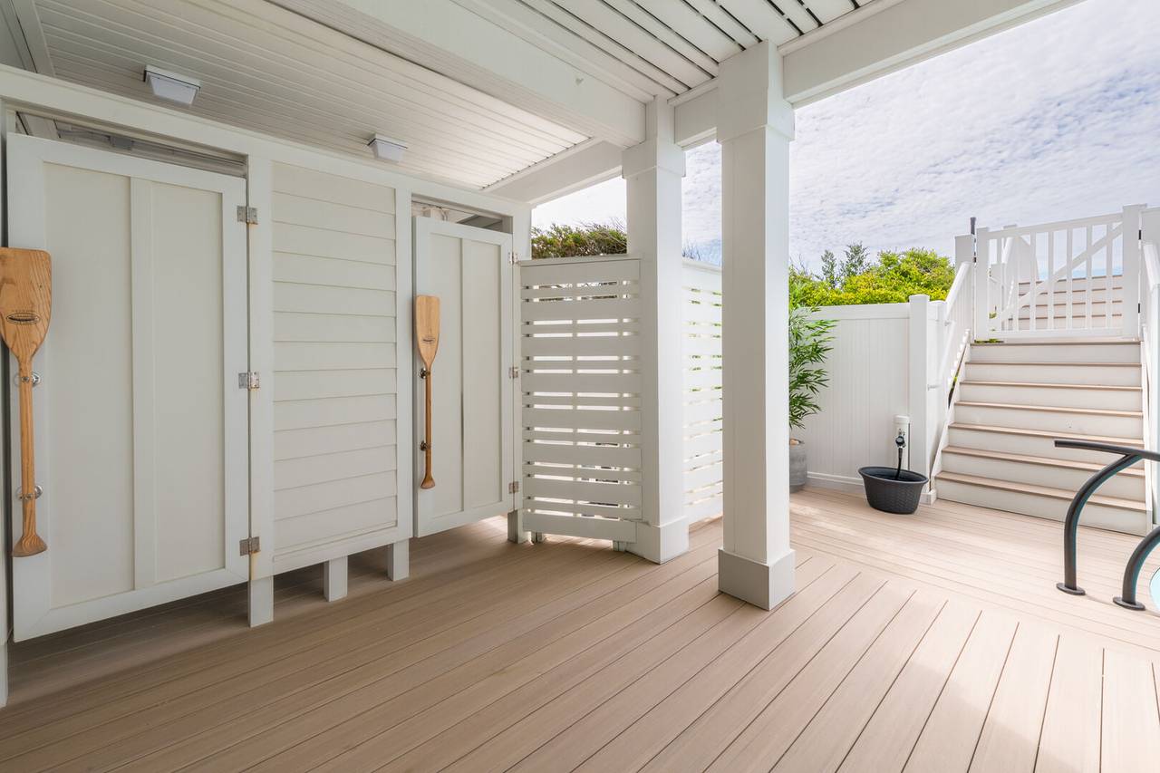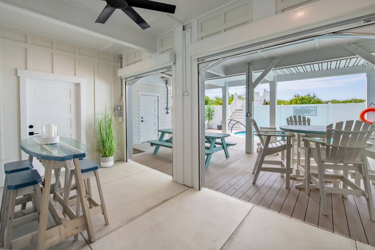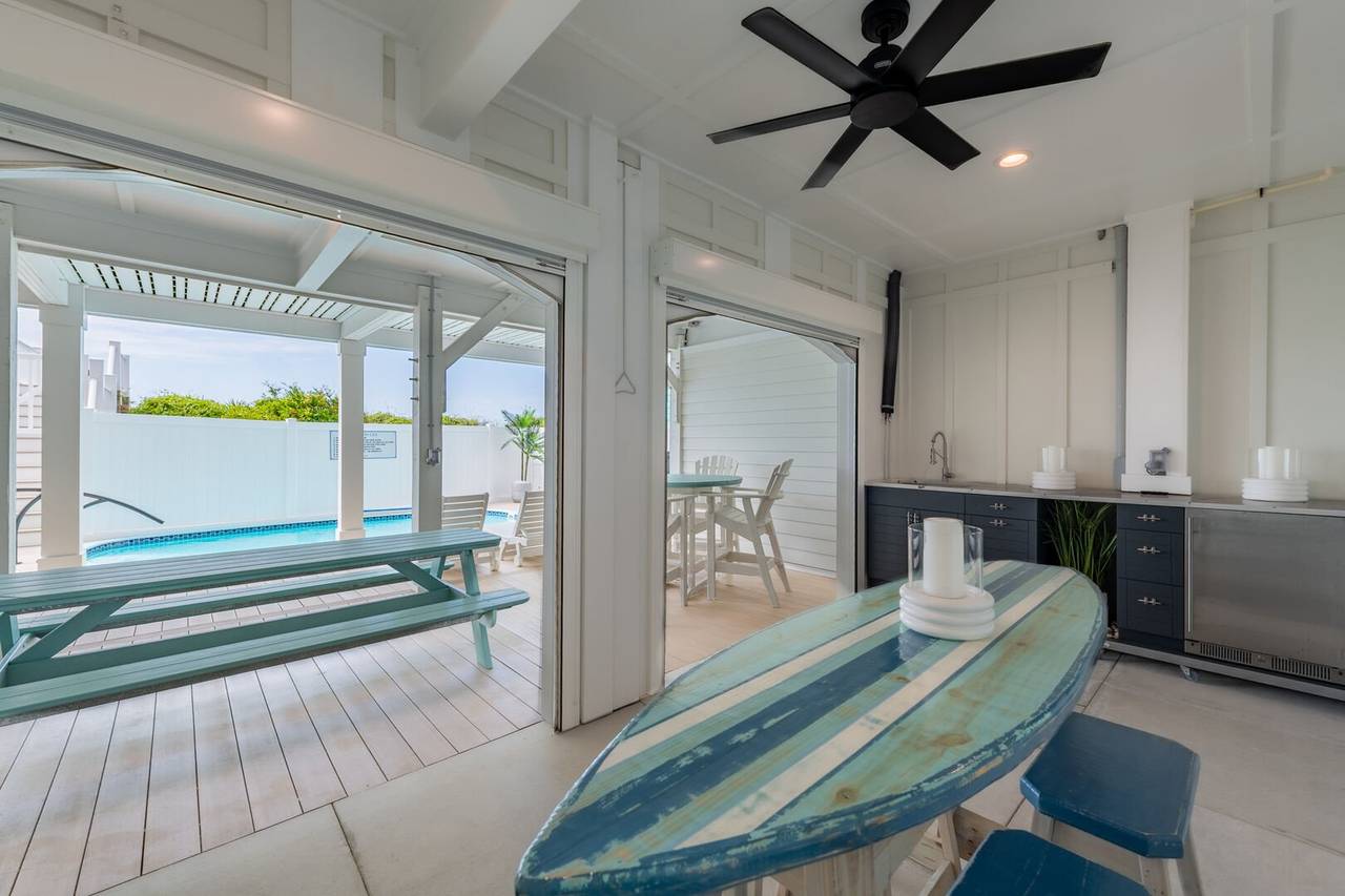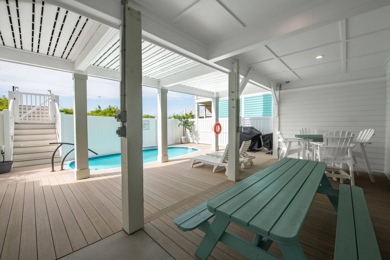 The details throughout are unmatched with custom tile, designer decor, unique light fixtures, spa-like bathrooms, and more! Watch the waves from two levels of oceanfront covered decking or sun all day by the private swimming pool! Plus, you are only steps away from the beach strand! After a fun day of sun and surf, you can unwind outside at the built-in tiki bar and lounge area or enjoy a meal al fresco while you watch the sunset. Don’t forget to enjoy a fun game by the pool with the outdoor ping pong table. The outside shower is fully enclosed and has cold and hot water. This home has it all!