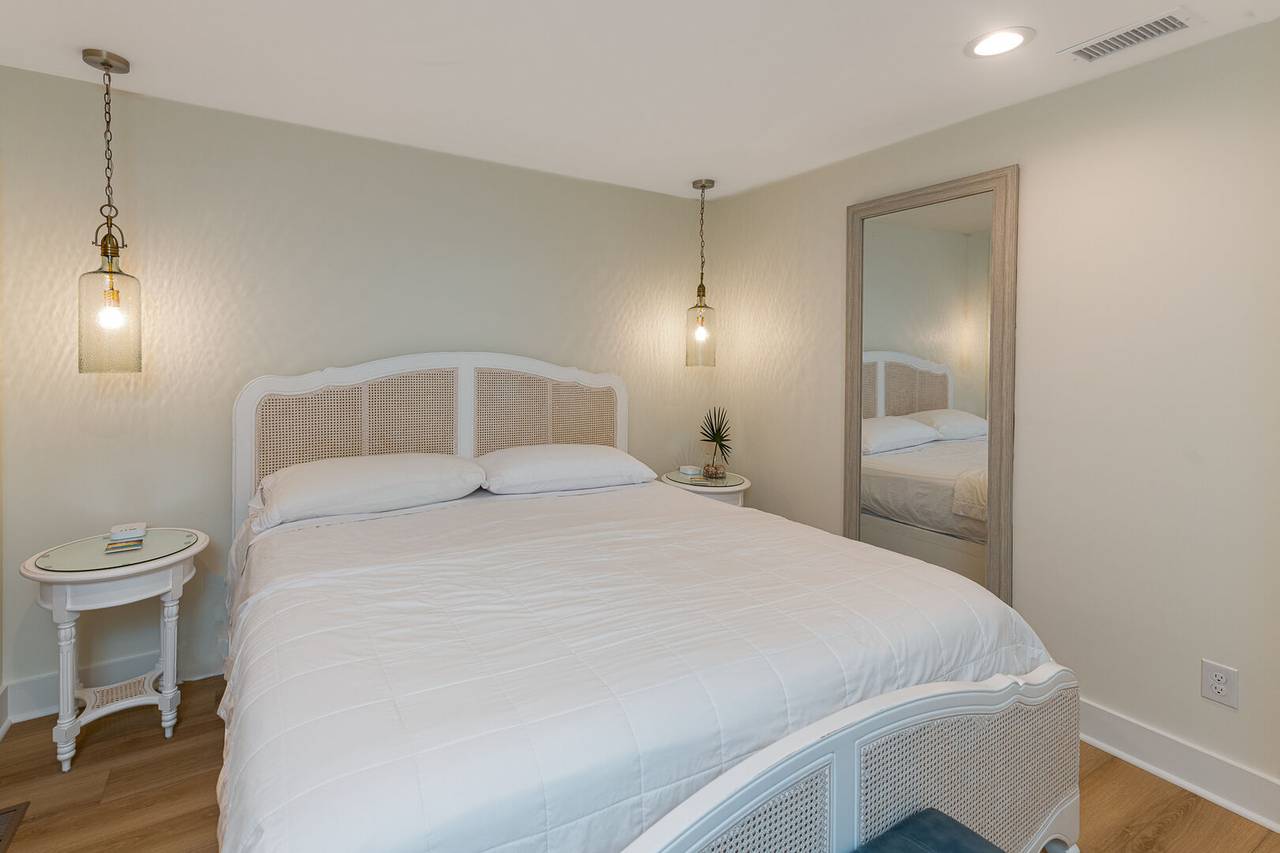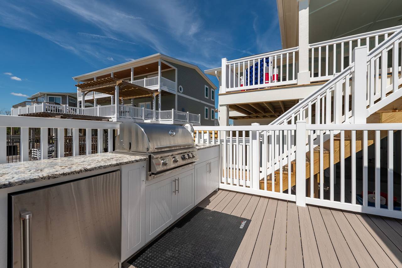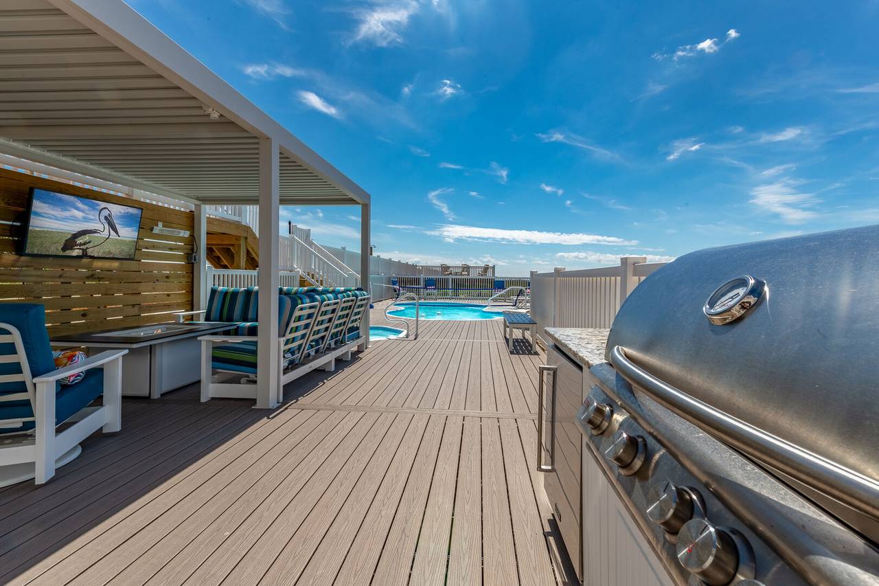 Outside, the home was completely transformed with a newly expanded deck and walkway to the beach, a relocated hot tub on the pool deck, increased outdoor living space, an outdoor gas grill, and expanded parking. New leisure features include a fire pit, a fire table, and a pergola beside the pool - perfect for relaxing evenings under the stars. For a little friendly competition, enjoy outdoor ping pong and cornhole with family and friends.