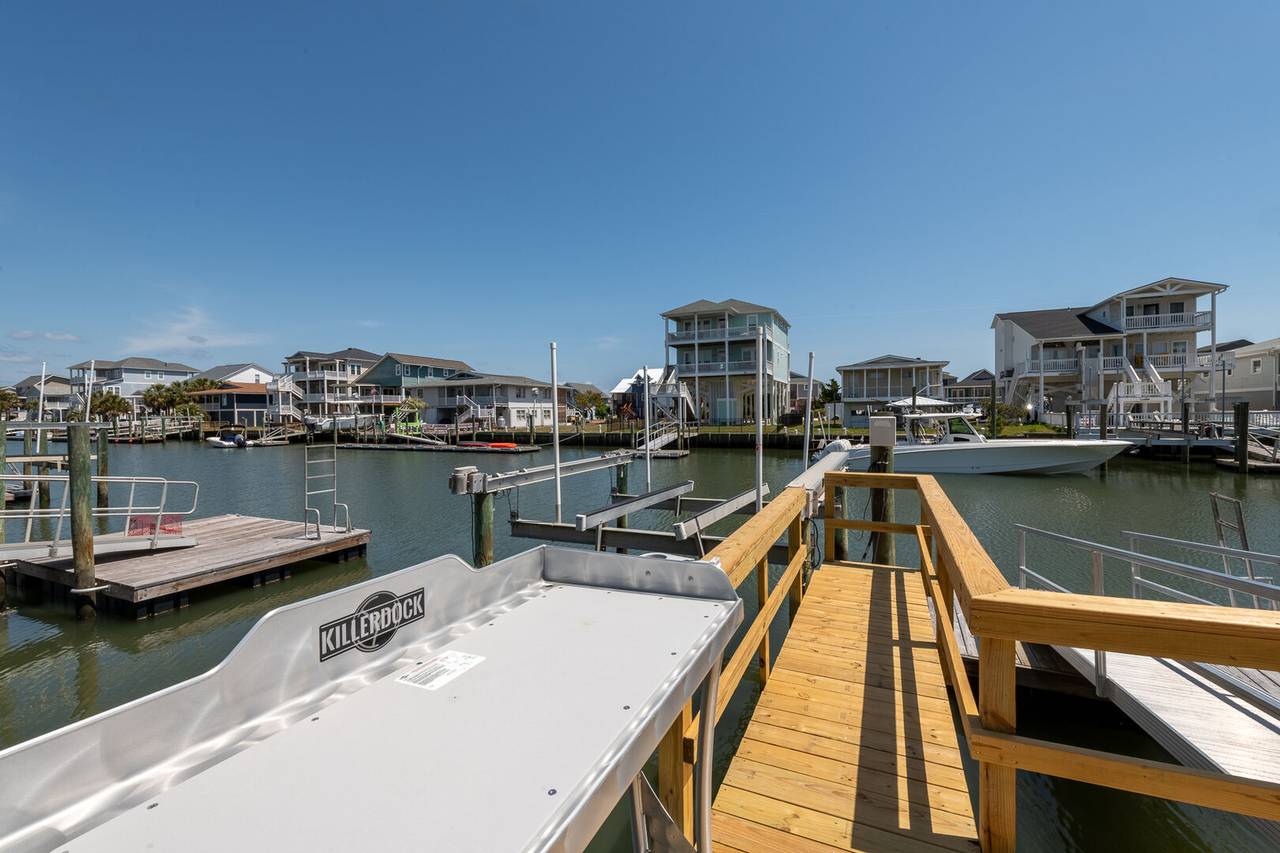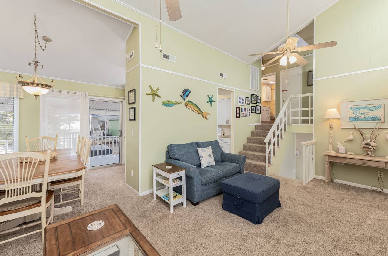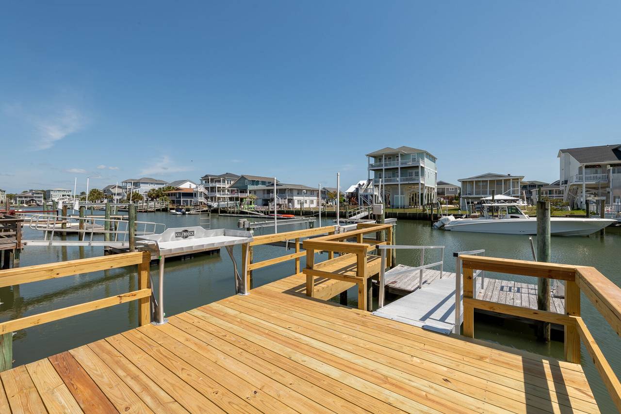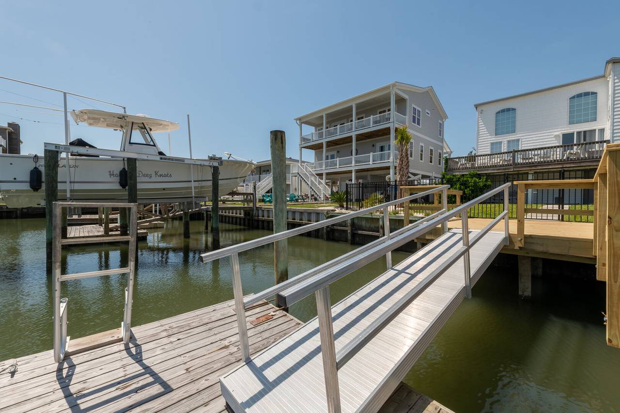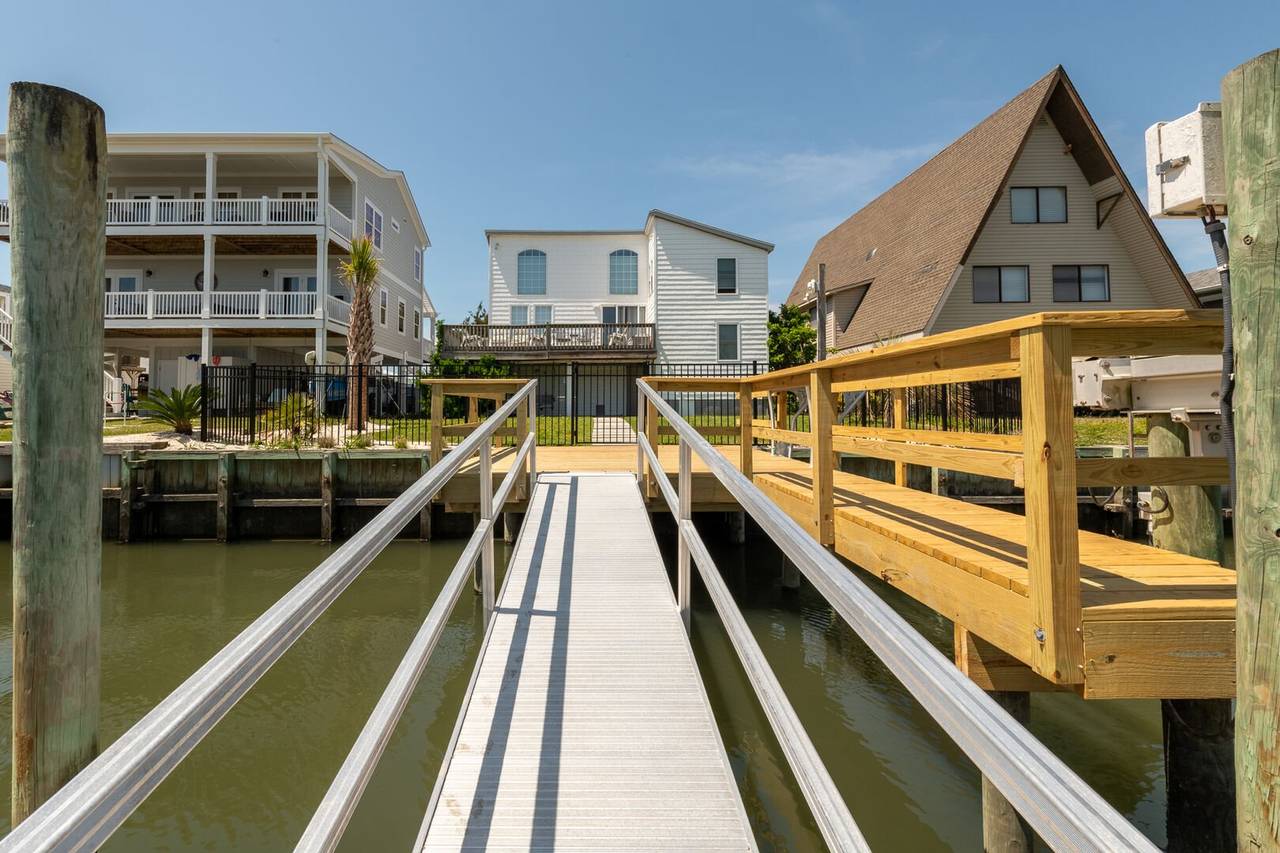Outside you will be treated to gorgeous views of the canal, a floating dock for boating and fishing, and a fenced-in backyard. Enjoy sunsets on the screened-in porch and sun on the open deck! The outside shower is enclosed and has hot and cold water, perfect after a long day at the beach or on the boat. There is even a fish sink for your convenience at the dock. The public beach access is very close and located across Ocean Blvd beside the General Store.Â
