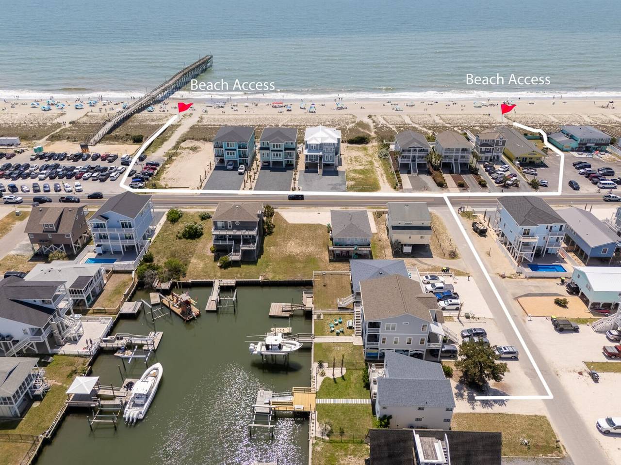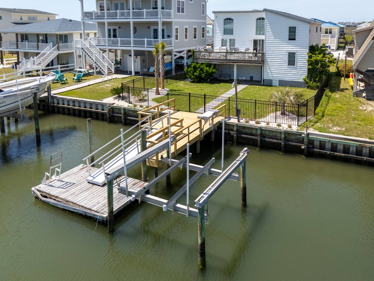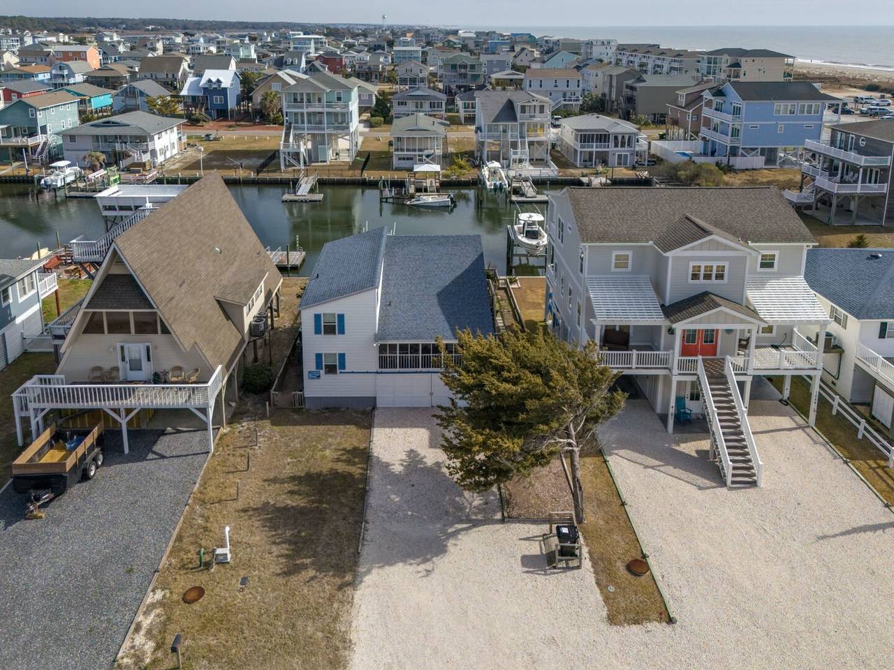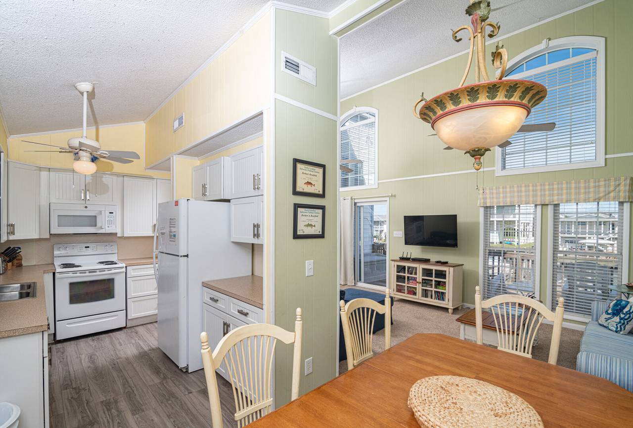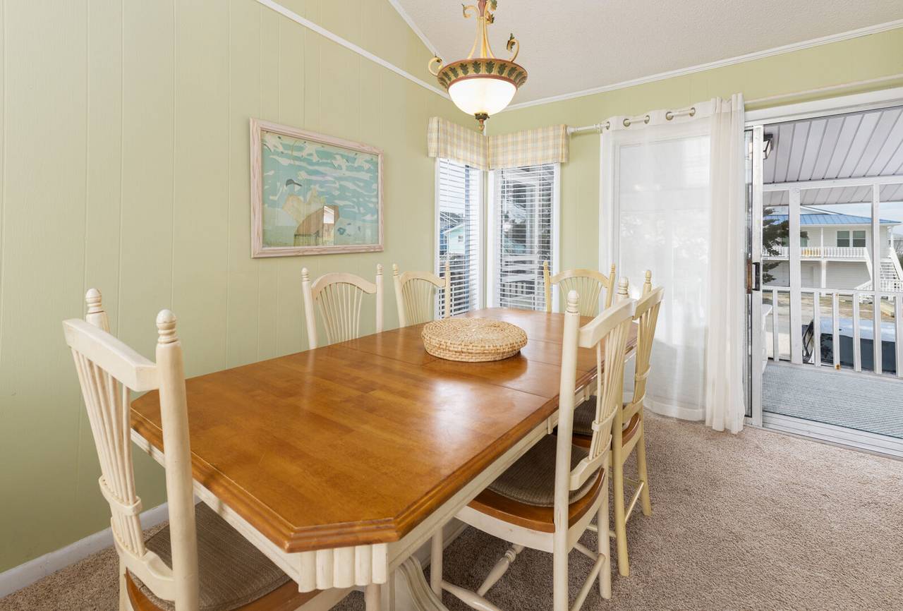 Outside you will be treated to gorgeous views of the canal, a floating dock for boating and fishing, and a fenced-in backyard. Enjoy sunsets on the screened-in porch and sun on the open deck! The outside shower is enclosed and has hot and cold water, perfect after a long day at the beach or on the boat. There is even a fish sink for your convenience at the dock. The public beach access is very close and located across Ocean Blvd beside the General Store.Â