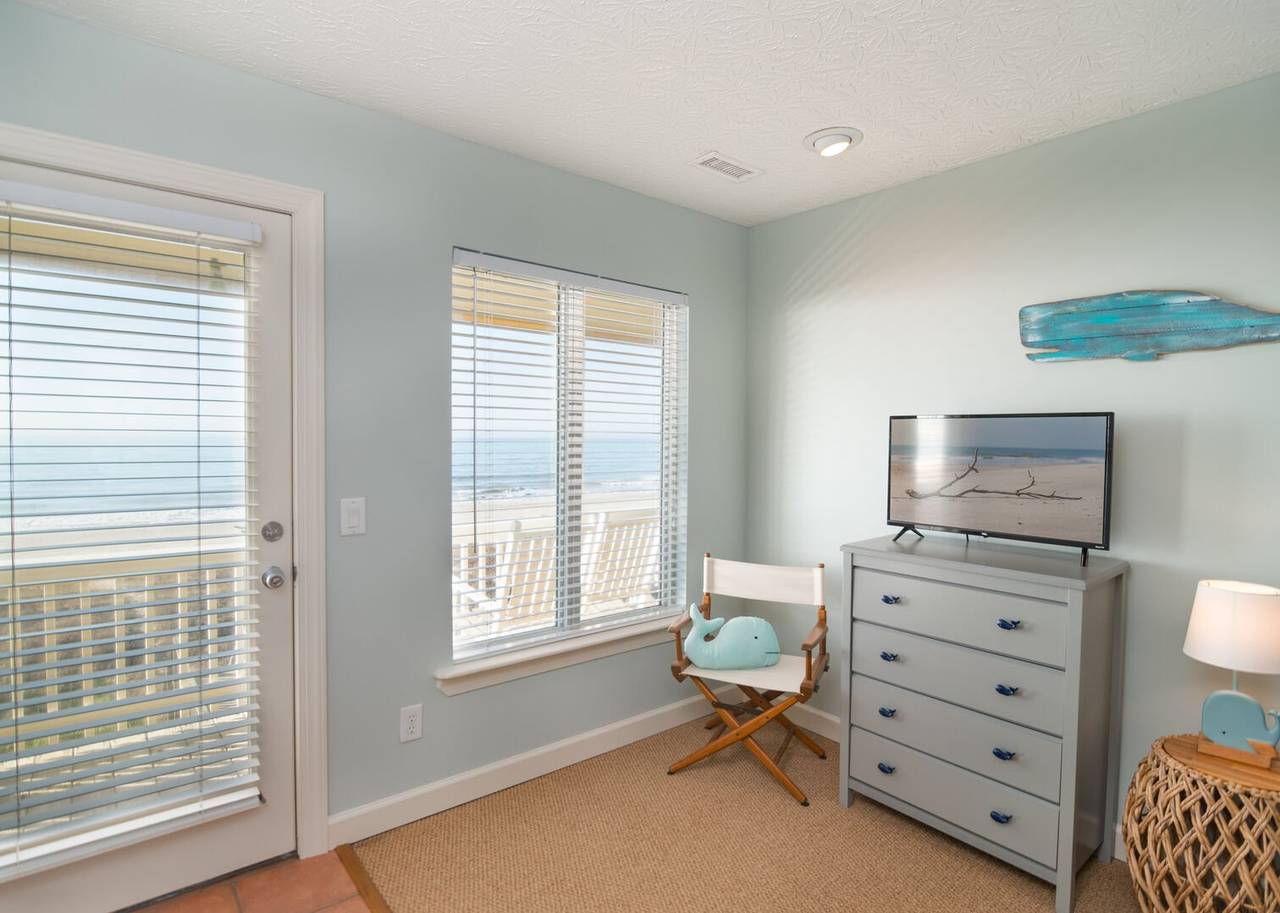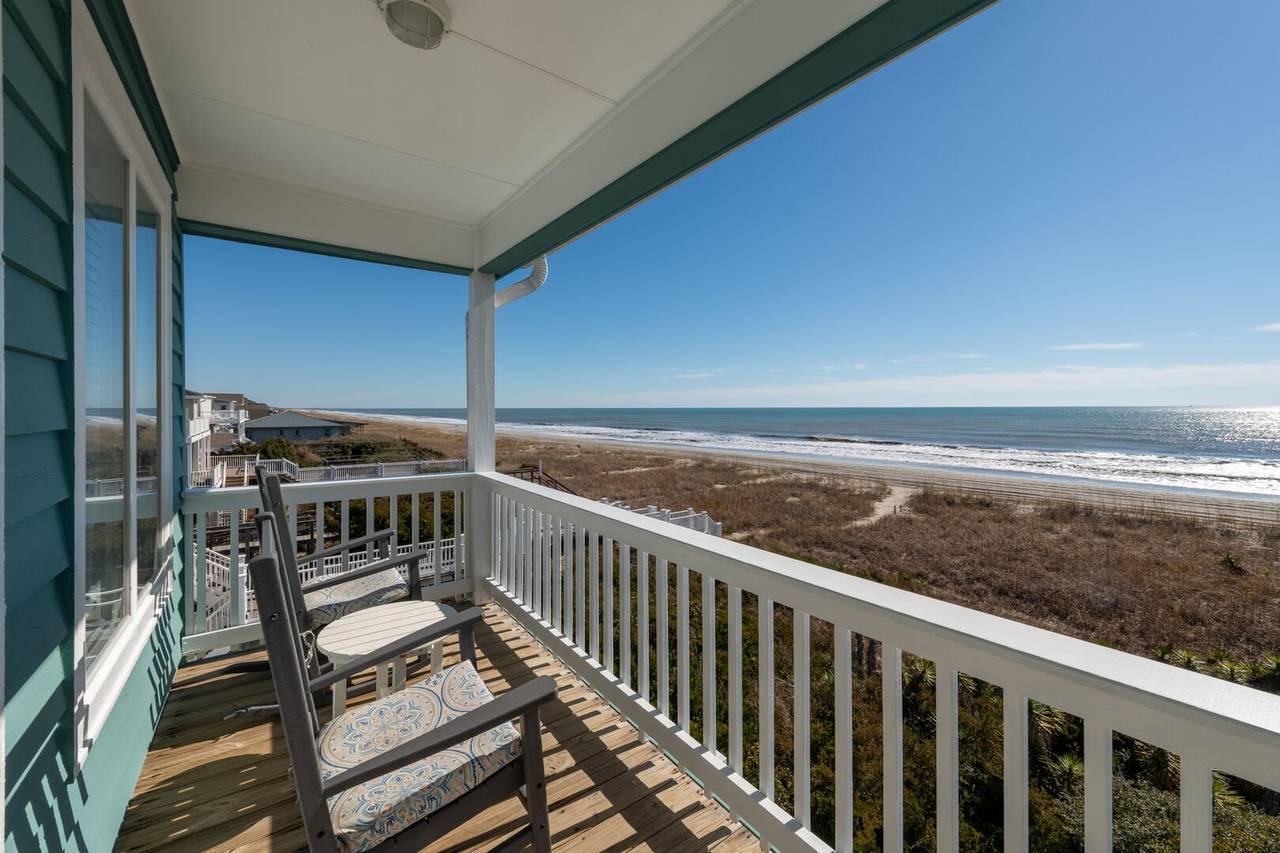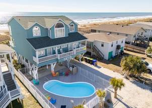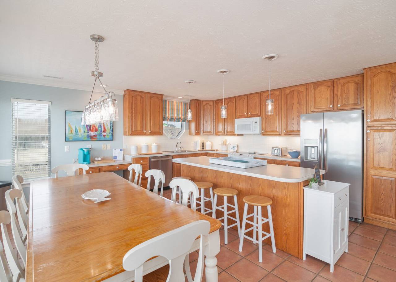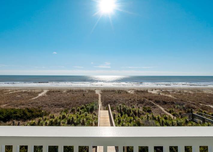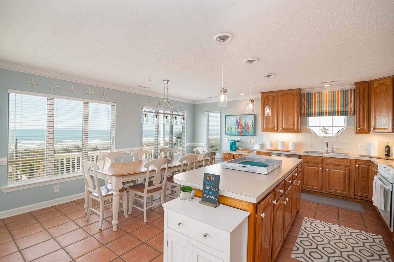 This beautiful 5 bedroom, 4.5 bathroom oceanfront island gem is ready to give both you and your dog the ultimate beach vacation. It offers stunning ocean views, a private pool, and unparalleled relaxation. Inside Turtle-ly Awesome, you'll find two spacious living rooms and an open, airy floor plan with coastal chic décor. The expansive open-concept main floor lets your whole crew relax together while enjoying the incredible ocean views. Every bedroom has balcony access, too! Outside, in addition to a private pool, there are two levels of covered oceanfront decks, a tanning deck, an enclosed shower, and a private boardwalk over the dunes leading directly to the beach strand. The kitchen at Turtle-ly Awesome is well stocked! Amenities include a Keurig and standard coffee maker (basket filters), electric tea kettle, crock pot, 4-slot toaster, Ninja blender, hand mixer, small sandwich press, and a cocktail shaker set.