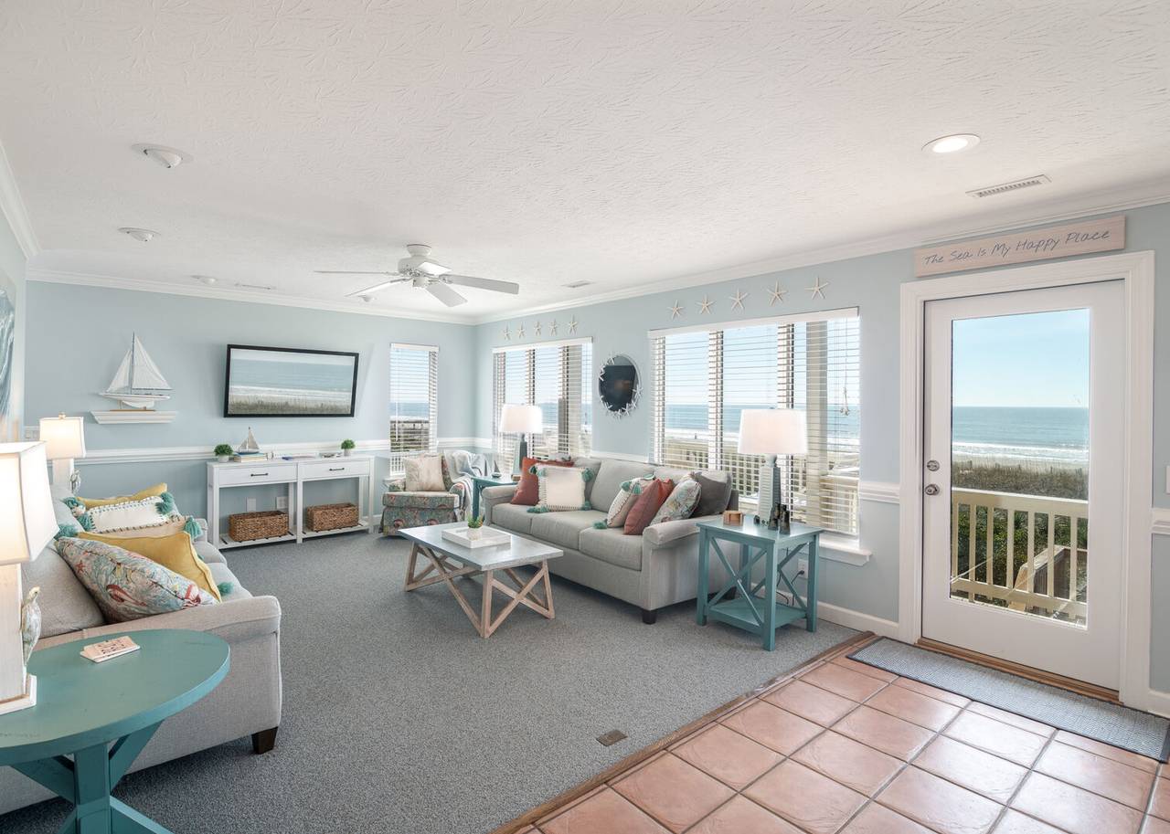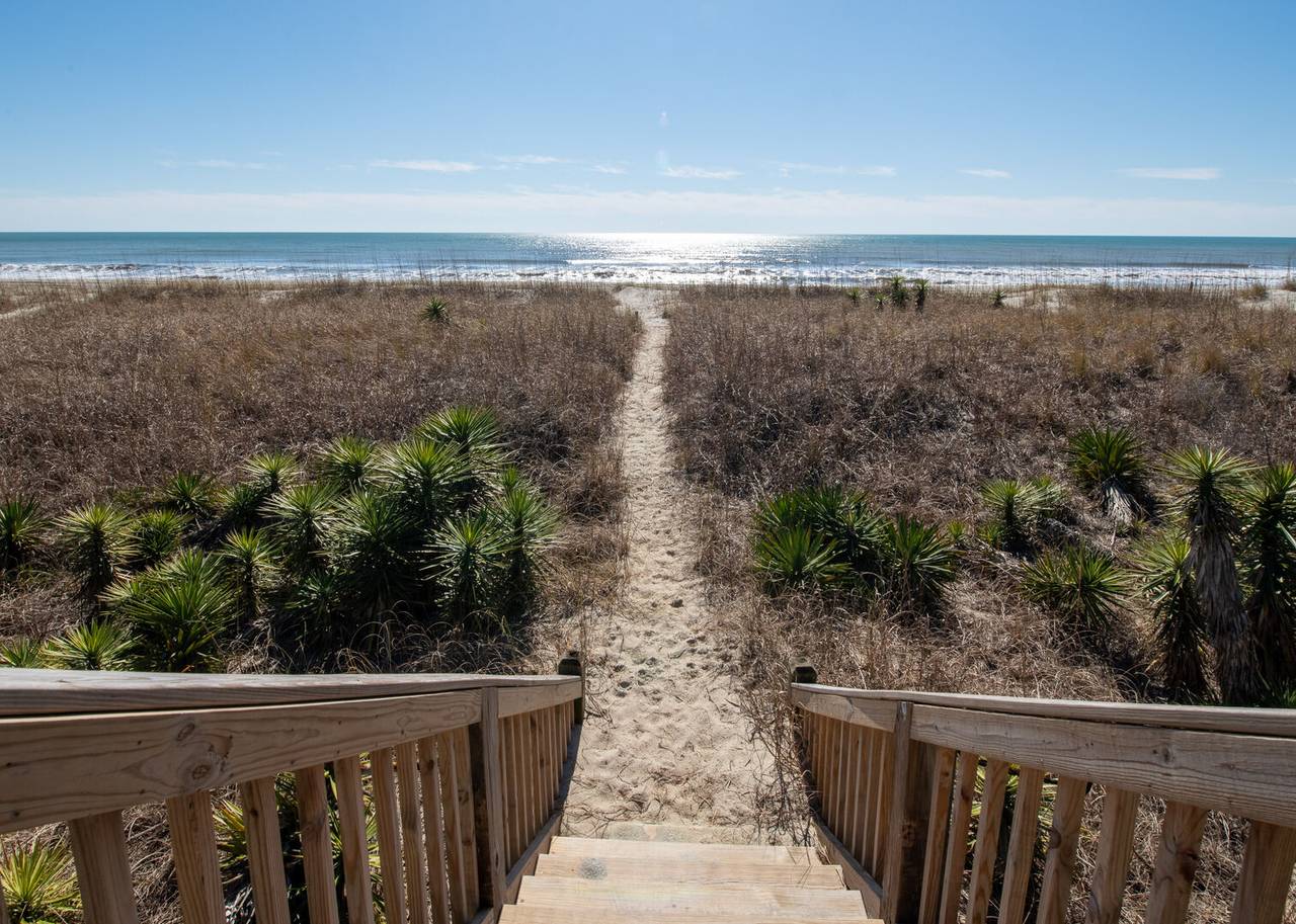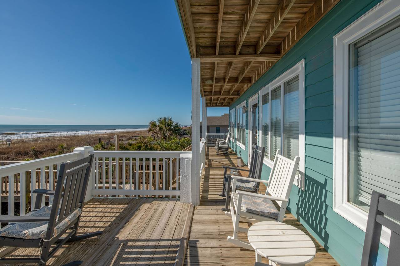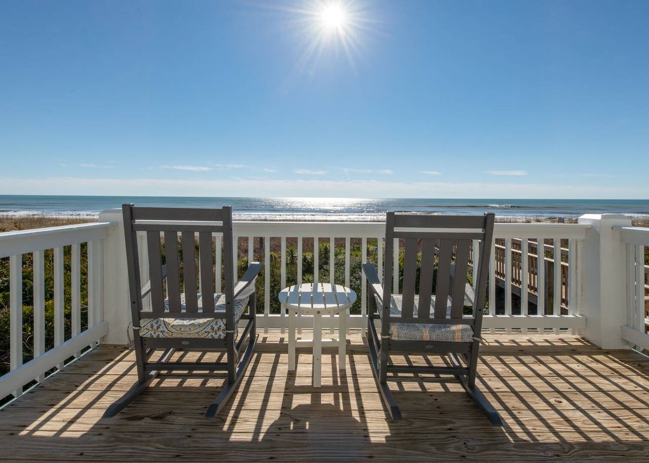 This beautiful 5 bedroom, 4.5 bathroom oceanfront island gem is ready to give both you and your dog the ultimate beach vacation. It offers stunning ocean views, a private pool, and unparalleled relaxation. Inside Turtle-ly Awesome, you'll find two spacious living rooms and an open, airy floor plan with coastal chic décor. The expansive open-concept main floor lets your whole crew relax together while enjoying the incredible ocean views. Every bedroom has balcony access, too! Outside, in addition to a private pool, there are two levels of covered oceanfront decks, a tanning deck, an enclosed shower, and a private boardwalk over the dunes leading directly to the beach strand. The kitchen at Turtle-ly Awesome is well stocked! Amenities include a Keurig and standard coffee maker (basket filters), electric tea kettle, crock pot, 4-slot toaster, Ninja blender, hand mixer, small sandwich press, and a cocktail shaker set.