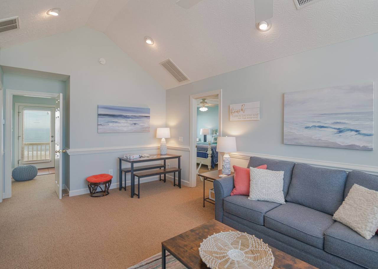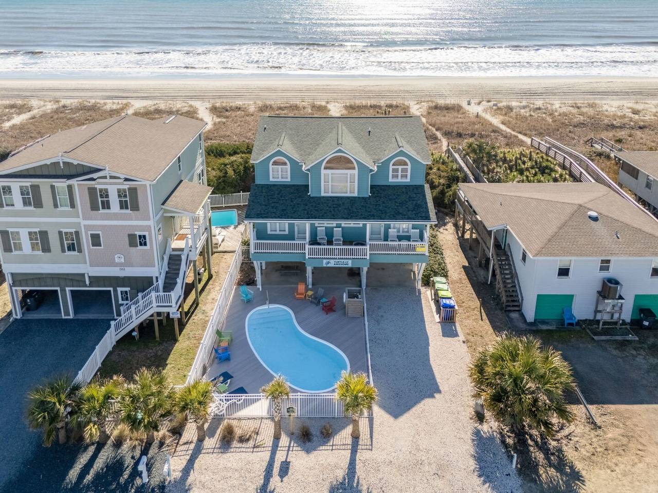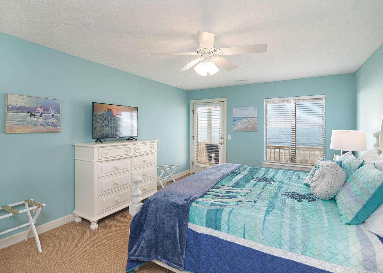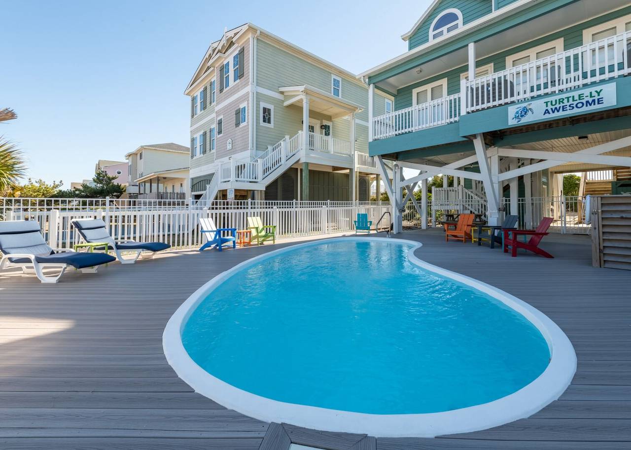 This beautiful 5 bedroom, 4.5 bathroom oceanfront island gem is ready to give both you and your dog the ultimate beach vacation. It offers stunning ocean views, a private pool, and unparalleled relaxation. Inside Turtle-ly Awesome, you'll find two spacious living rooms and an open, airy floor plan with coastal chic décor. The expansive open-concept main floor lets your whole crew relax together while enjoying the incredible ocean views. Every bedroom has balcony access, too! Outside, in addition to a private pool, there are two levels of covered oceanfront decks, a tanning deck, an enclosed shower, and a private boardwalk over the dunes leading directly to the beach strand. The kitchen at Turtle-ly Awesome is well stocked! Amenities include a Keurig and standard coffee maker (basket filters), electric tea kettle, crock pot, 4-slot toaster, Ninja blender, hand mixer, small sandwich press, and a cocktail shaker set.