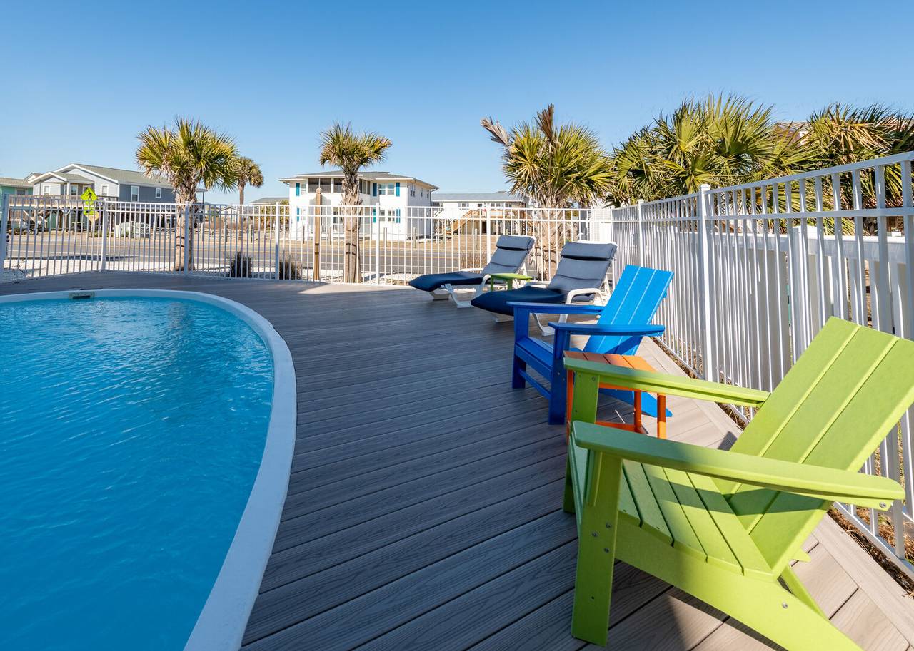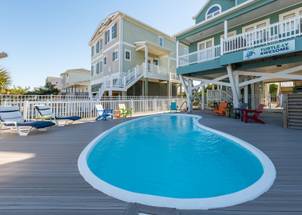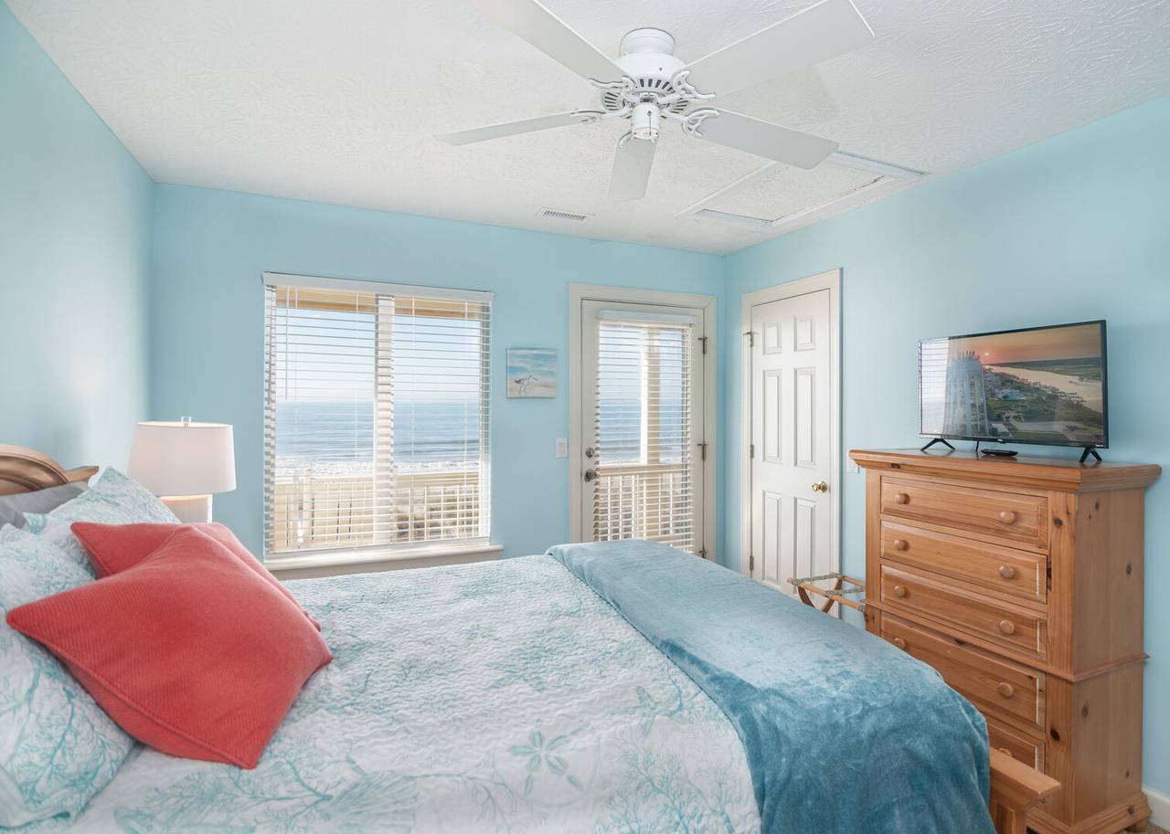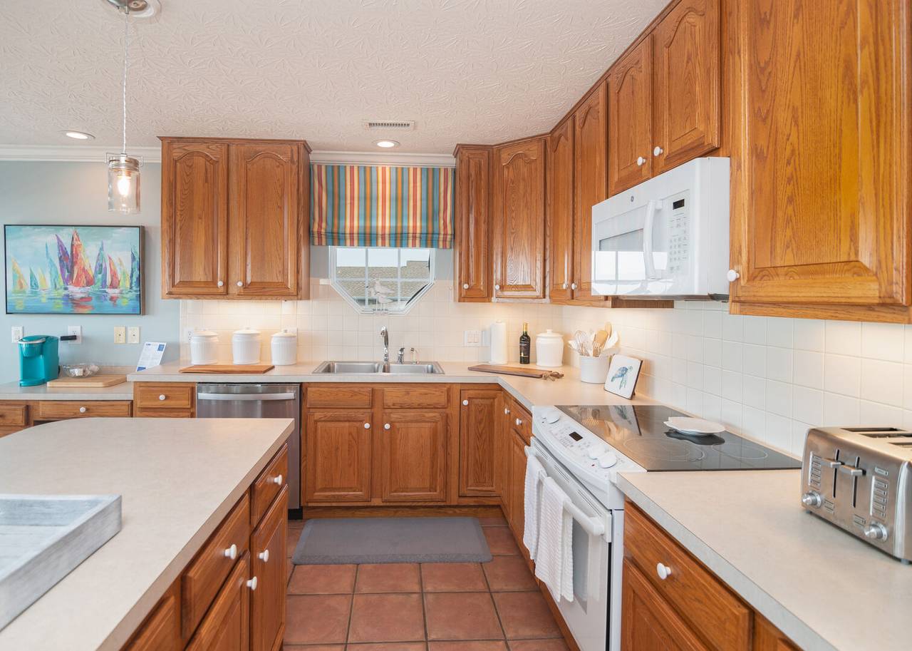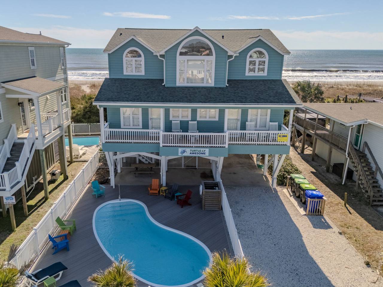 This beautiful 5 bedroom, 4.5 bathroom oceanfront island gem is ready to give both you and your dog the ultimate beach vacation. It offers stunning ocean views, a private pool, and unparalleled relaxation. Inside Turtle-ly Awesome, you'll find two spacious living rooms and an open, airy floor plan with coastal chic décor. The expansive open-concept main floor lets your whole crew relax together while enjoying the incredible ocean views. Every bedroom has balcony access, too! Outside, in addition to a private pool, there are two levels of covered oceanfront decks, a tanning deck, an enclosed shower, and a private boardwalk over the dunes leading directly to the beach strand. The kitchen at Turtle-ly Awesome is well stocked! Amenities include a Keurig and standard coffee maker (basket filters), electric tea kettle, crock pot, 4-slot toaster, Ninja blender, hand mixer, small sandwich press, and a cocktail shaker set.