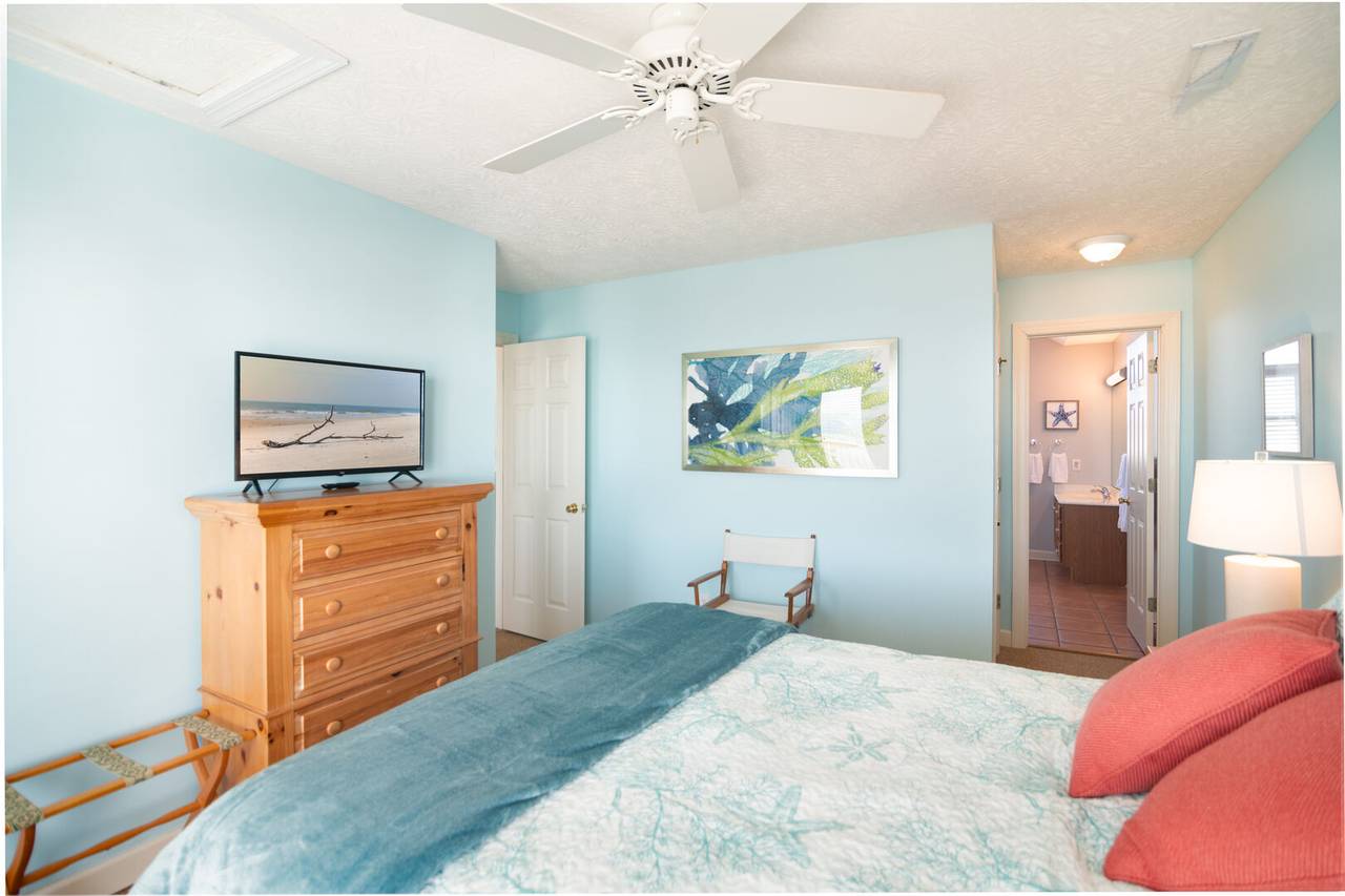 Recent updates include fresh exterior paint and the outdoor shower addition so that it has doubled in size and now includes a changing area. Additionally, the private boardwalk over the dunes is new. In the kitchen there is a new fridge, a quiet dishwasher, and new high-quality small appliances to make entertaining easier than ever. To give you the best night's rest after a day of fun in the sun, we've improved the bedrooms with new mattresses, and there's a comfy new sleeper sofa upstairs. Each bedroom also features a smart TV so you can stream your favorite shows when you want a little quiet time. We look forward to your stay at Holden Beach!